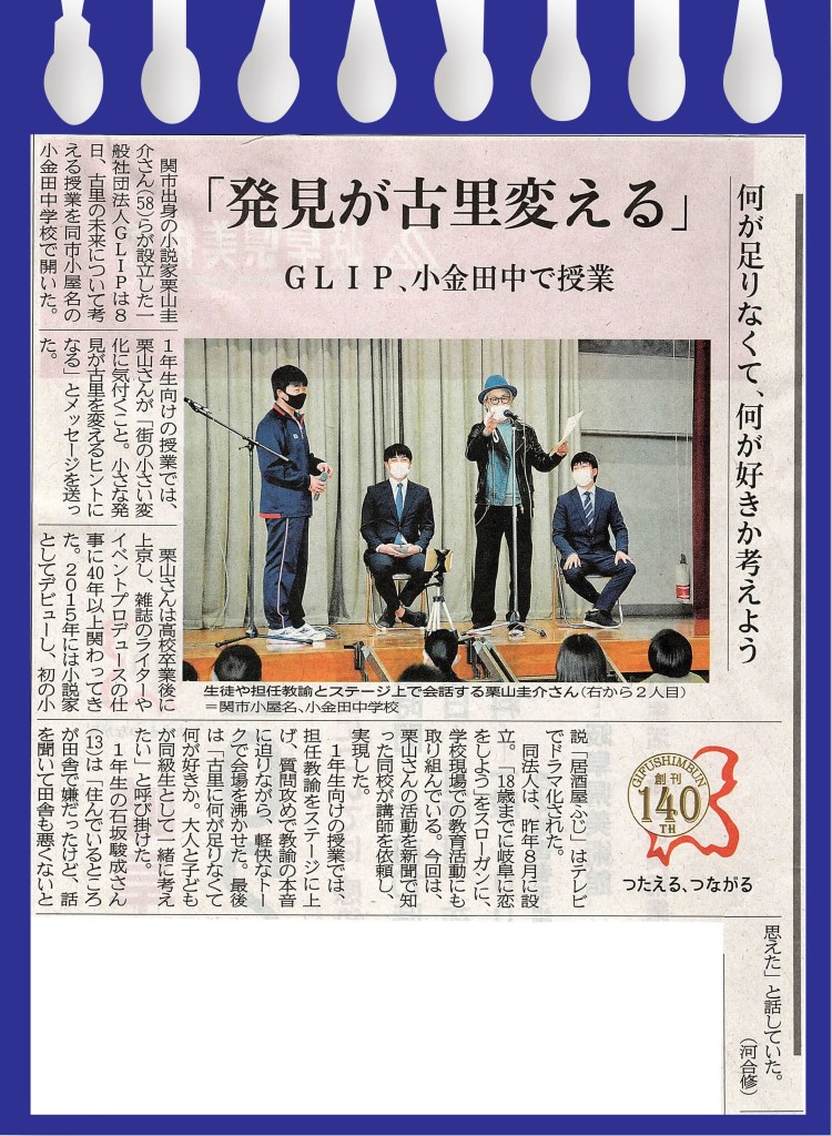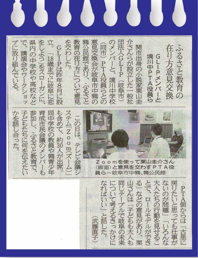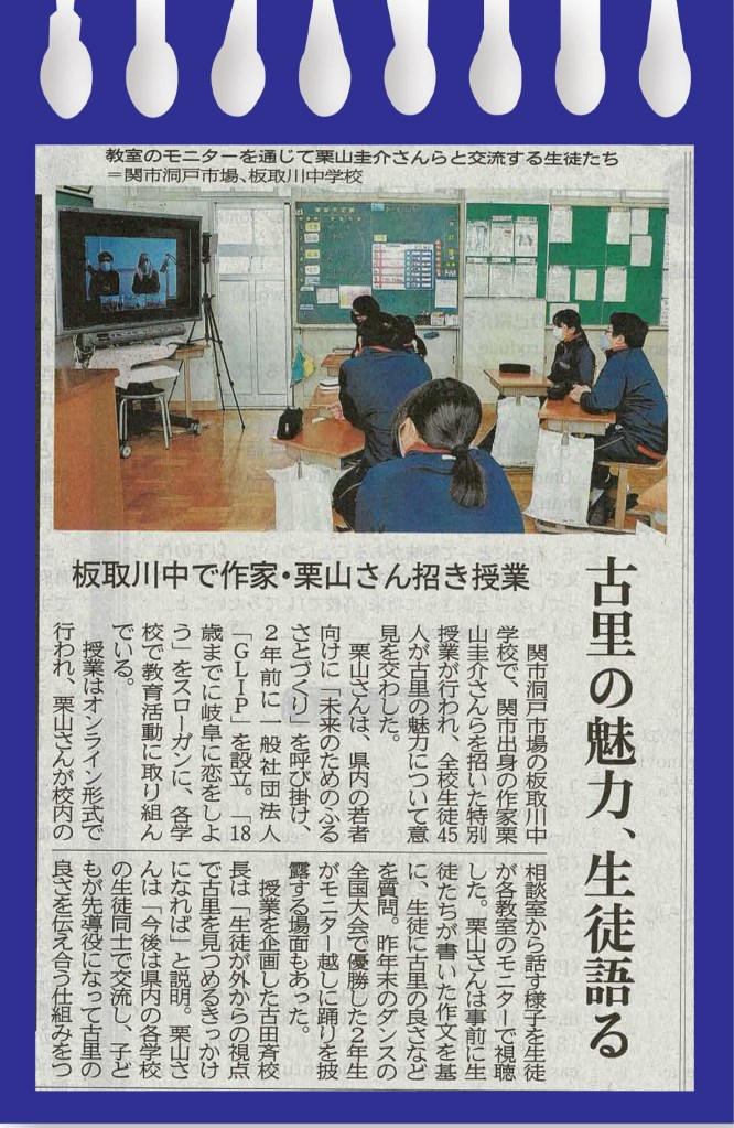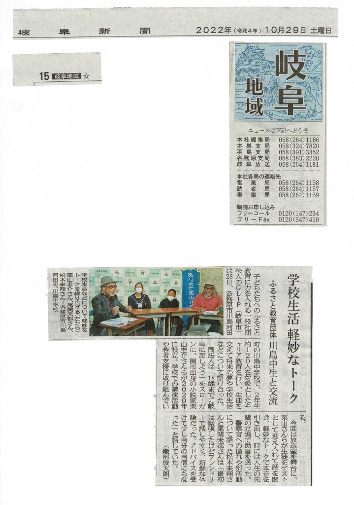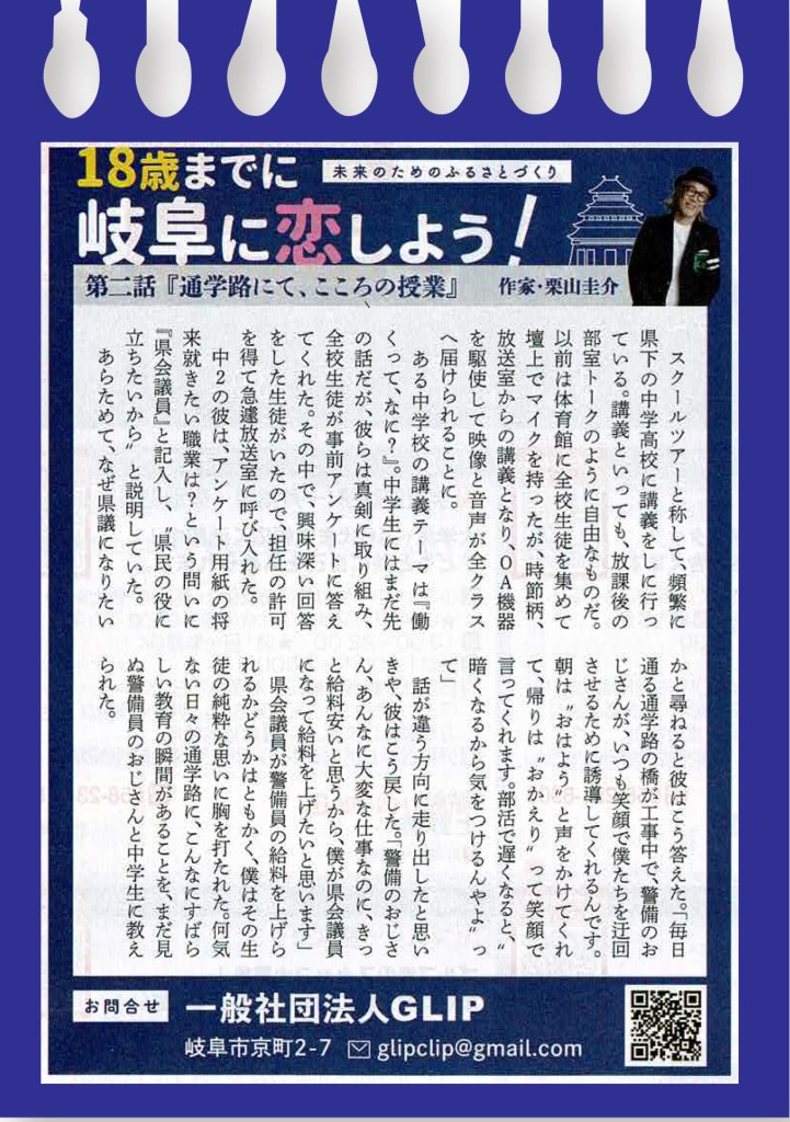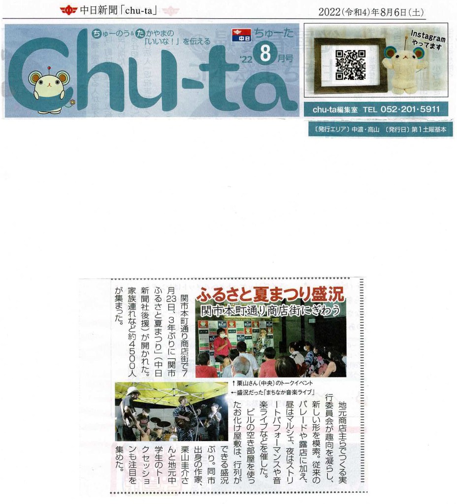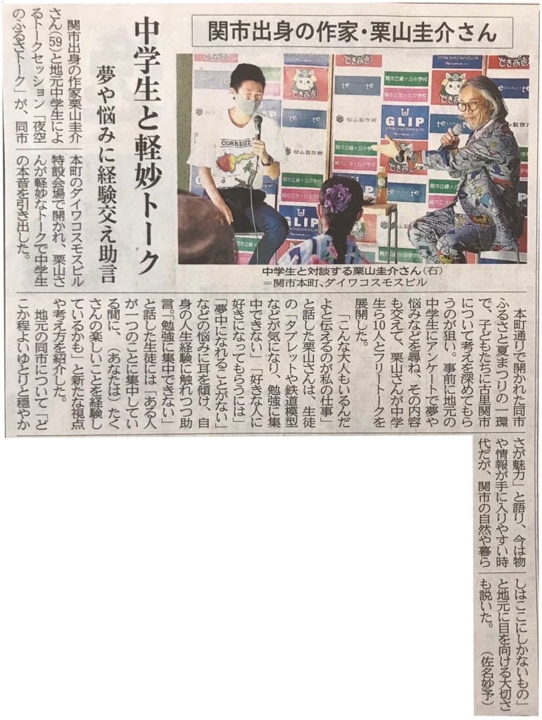 2023.07.26 関市ふるさと夏祭りでの「栗山圭介×3世代 夜空のふるさトーク」が岐阜新聞で紹介されました。