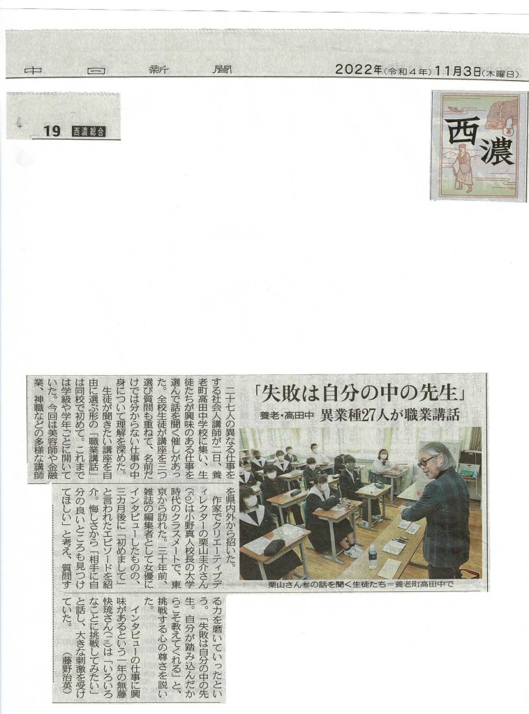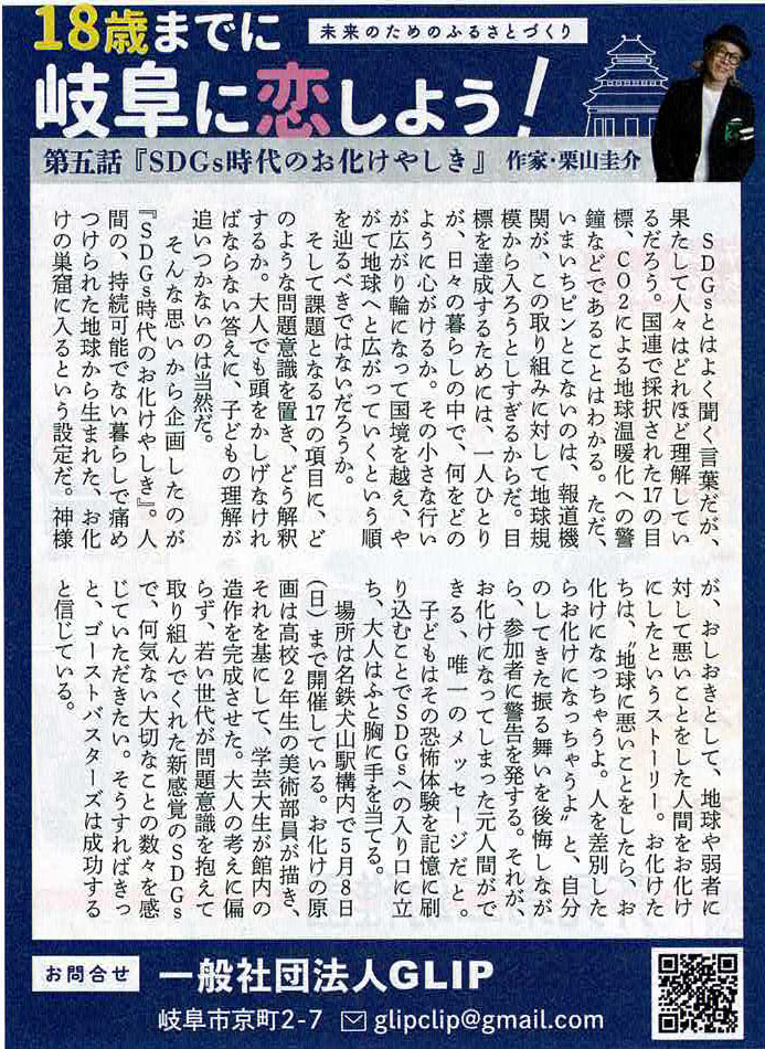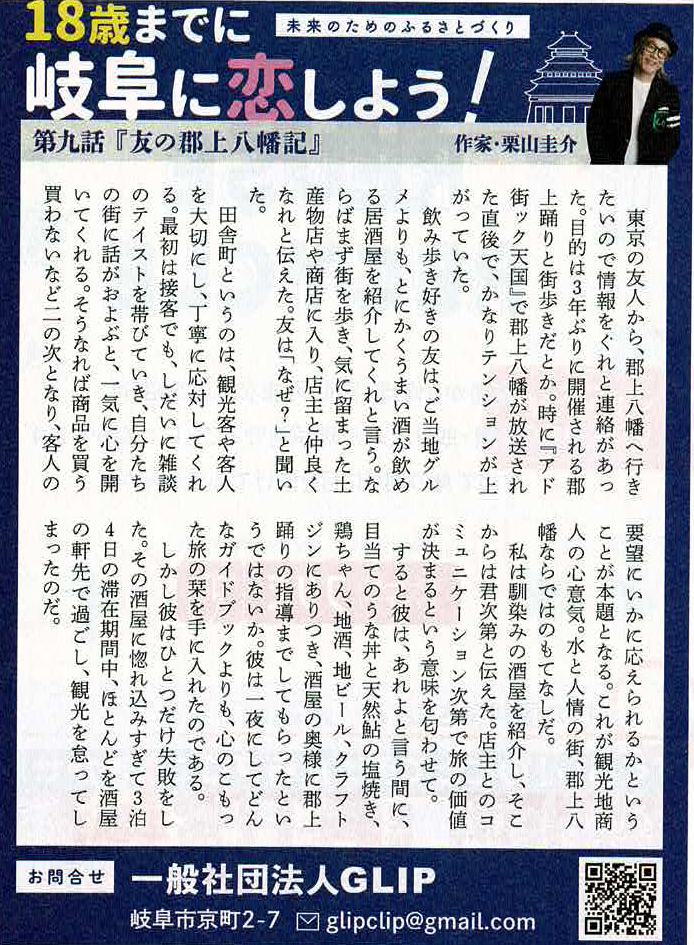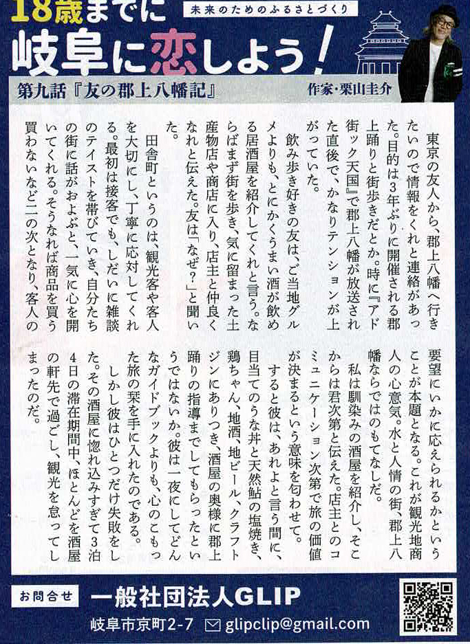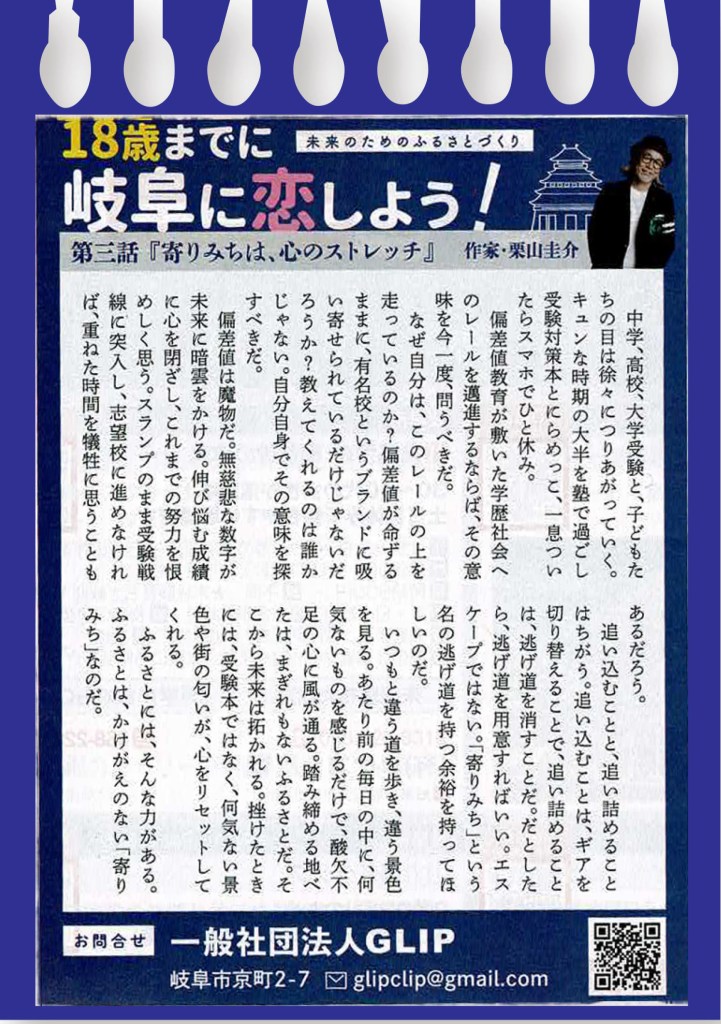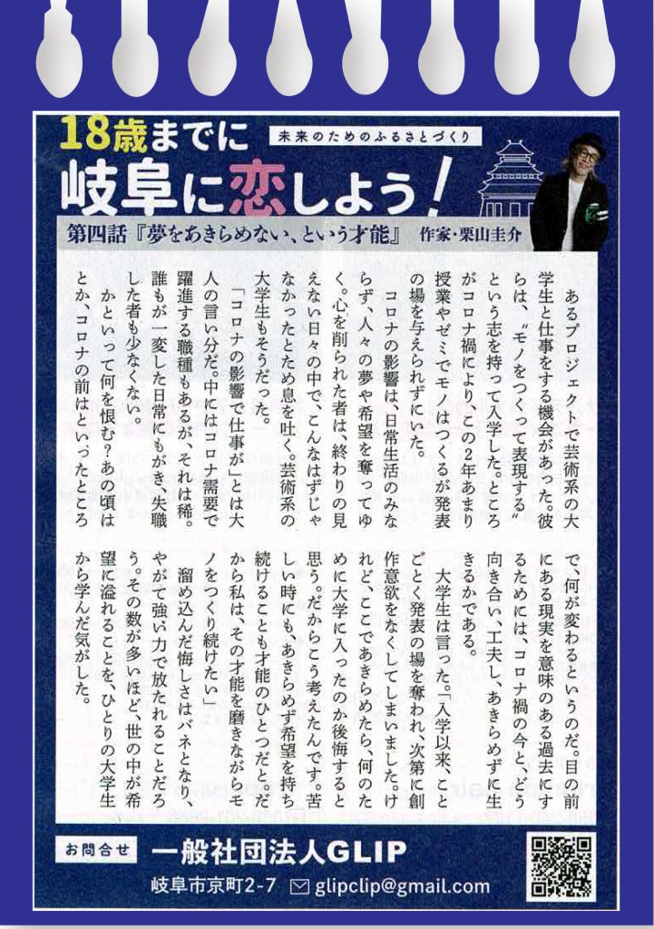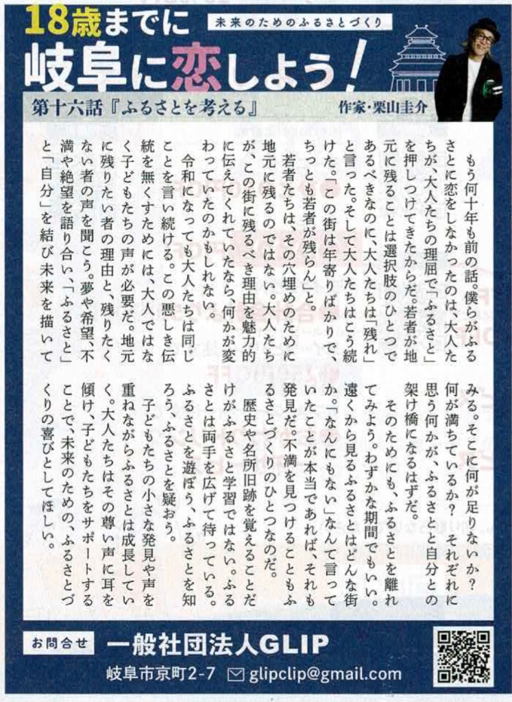 2023.07.26 関市ふるさと夏祭りでの「栗山圭介×3世代 夜空のふるさトーク」が岐阜新聞で紹介されました。