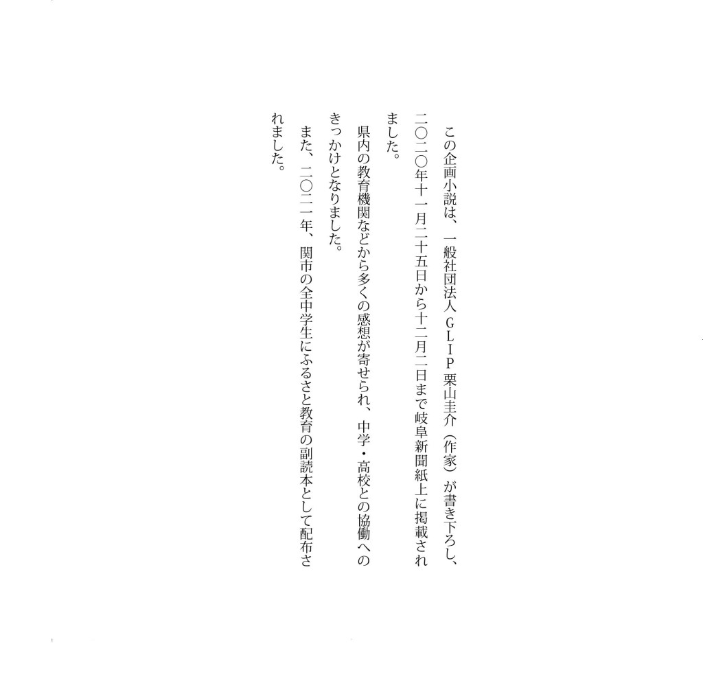 企画小説「未来のための、ふるさとづくり」 未来のための、ふるさとづくり(一) 未来のための、ふるさとづくり(二) 未来のための、ふるさとづくり(三) 未来のための、ふるさとづくり(四) 未来のための、ふるさとづくり(五)