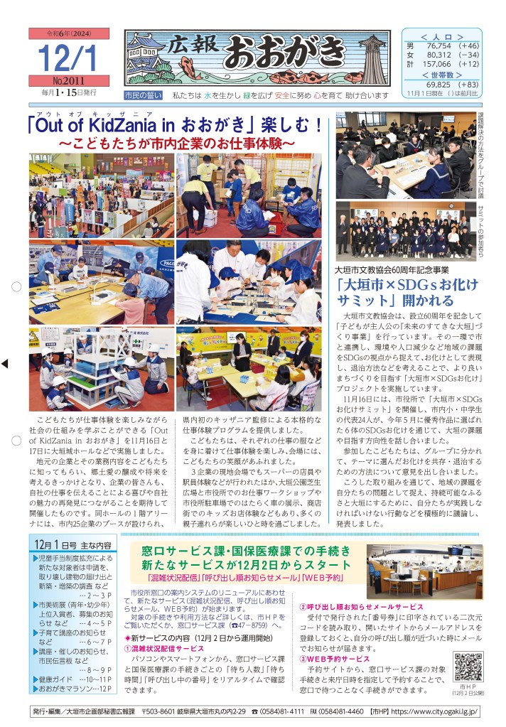 11月16日に大垣市役所にて実施された【大垣市×SDGsお化け】サミットの様子が12月1日発行の「広報おおがき」の第一面で紹介されています。是非ご覧ください。