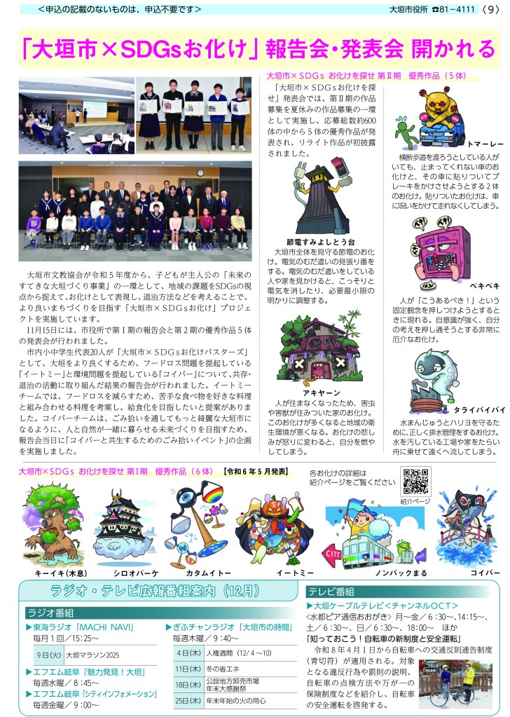 11月15日に大垣市役所にて実施された『大垣市×SDGsお化け』報告会・発表会の様子が12月1日発行の「広報おおがき」の9ページで紹介されています。是非ご覧ください。
